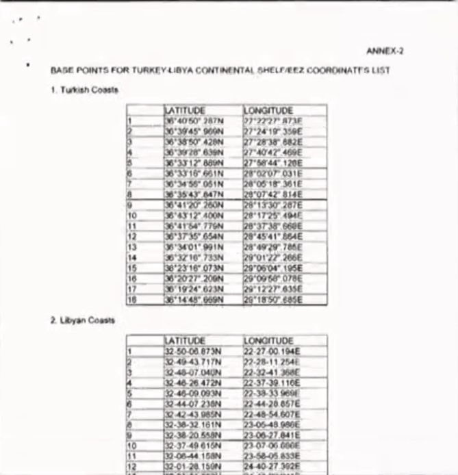 Το μνημόνιο έχει τις συντεταγμένες που ορίζουν τις δύο ΑΟΖ και μια γραμμή όπου «συναντώνται» νοτιοανατολικά της Κρήτης.