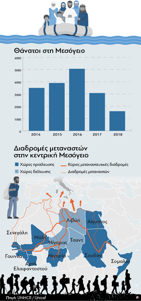 Η Ιταλία, της οποίας η νέα κυβέρνηση έχει κλείσει τα λιμάνια της στα σκάφη διάσωσης, είχε περίπου 18.130 μετανάστες που έφθασαν διά θαλάσσης από τη Λιβύη εφέτος, με τους υπόλοιπους να κατευθύνονται στην Ελλάδα, τη Μάλτα και την Κύπρο.