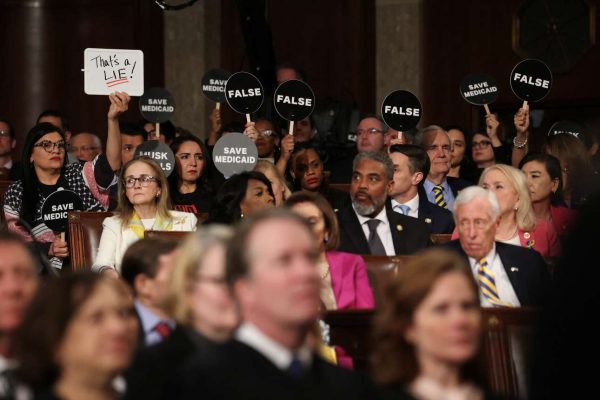 Η εικόνα στο αμερικανικό Κογκρέσο ήταν ακριβώς αυτή που θα περίμενε κανείς μετά από ενάμιση μήνα προεδρίας του Ντόναλντ Τραμπ: Κάτι ανάμεσα σε πολιτική και ένα εξωφρενικό σόου, φτιαγμένο για την τηλεόραση. Τα μισά μέλη του Κογκρέσου τον χειροκροτούσαν με ενθουσιασμό πριν καν ανοίξει το στόμα του και τα άλλα μισά κρατούσαν μπροστά τους επιγραφές με τις λέξεις «ψέματα» και «λάθος».