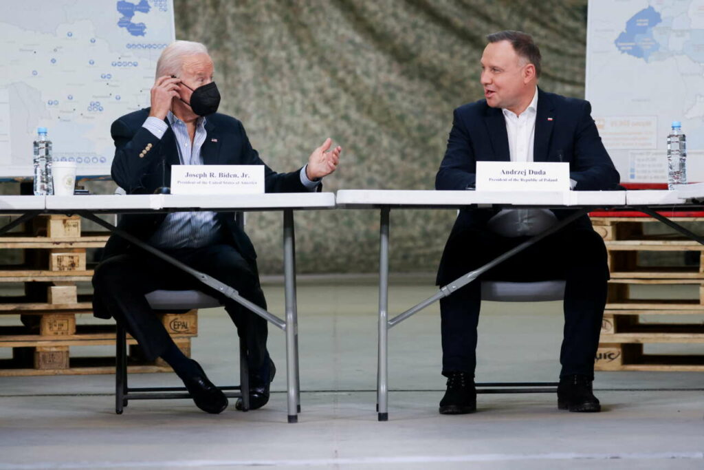 Επειτα, ο Μπάιντεν συναντήθηκε με τον πολωνό ομόλογό του Αντρέι Ντούντα στο αεροδρόμιο του Ρζεσζόφ ενώ στη συνέχεια αναμένεται να μεταβεί στη Βαρσοβία για συνομιλίες με πολωνούς ηγέτες και μια επίσκεψη σε ένα κέντρο υποδοχής ουκρανών προσφύγων, που εγκατέλειψαν τη χώρα τους για να γλυτώσουν από τη ρωσική εισβολή.