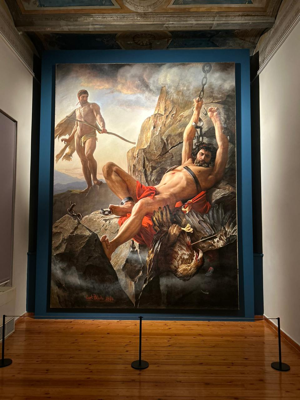 «Αυτό που κάνει το έργο του Carl Bloch “Προμηθέας Λυόμενος”, ακόμη πιο ξεχωριστό», είπε η Λίνα Μενδώνη, «είναι η ιστορική του διαδρομή. Παραγγέλθηκε από τον Γεώργιο Α΄ της Ελλάδας, Δανό στην καταγωγή βασιλιά, που το 1863 ανέλαβε τον θρόνο της χώρας. Η επιλογή του μύθου του Προμηθέα δεν ήταν τυχαία. Για τον νεαρό βασιλιά, το θέμα αντιπροσώπευε τις φιλοδοξίες του για την καθολική απελευθέρωση και αναγέννηση της Ελλάδας, μετά την Επανάσταση του 1821. Παράλληλα, το έργο είχε ιδιαίτερη σημασία και για τη Δανία, όπου εκτέθηκε το 1865, μία μόλις χρονιά μετά την ήττα της χώρας στον Πρωσσο-Δανικό πόλεμο. Οι Δανοί είδαν στον Προμηθέα ως σύμβολο της δικής τους εθνικής αντίστασης και ελπίδας για την απελευθέρωση τους, κάνοντάς το ένα έργο διπλής εθνικής σημασίας».