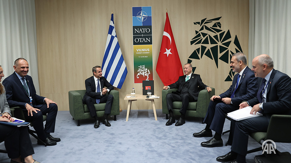 Ο Πρωθυπουργός Κυριάκος Μητσοτάκης συναντήθηκε με τον Πρόεδρο της Τουρκίας, Ρετζέπ Ταγίπ Ερντογάν στο περιθώριο της Συνόδου Κορυφής του ΝΑΤΟ στο Vilnius της Λιθουανίας, παρουσία των υπουργών Εξωτερικών της Ελλάδας και της Τουρκίας.