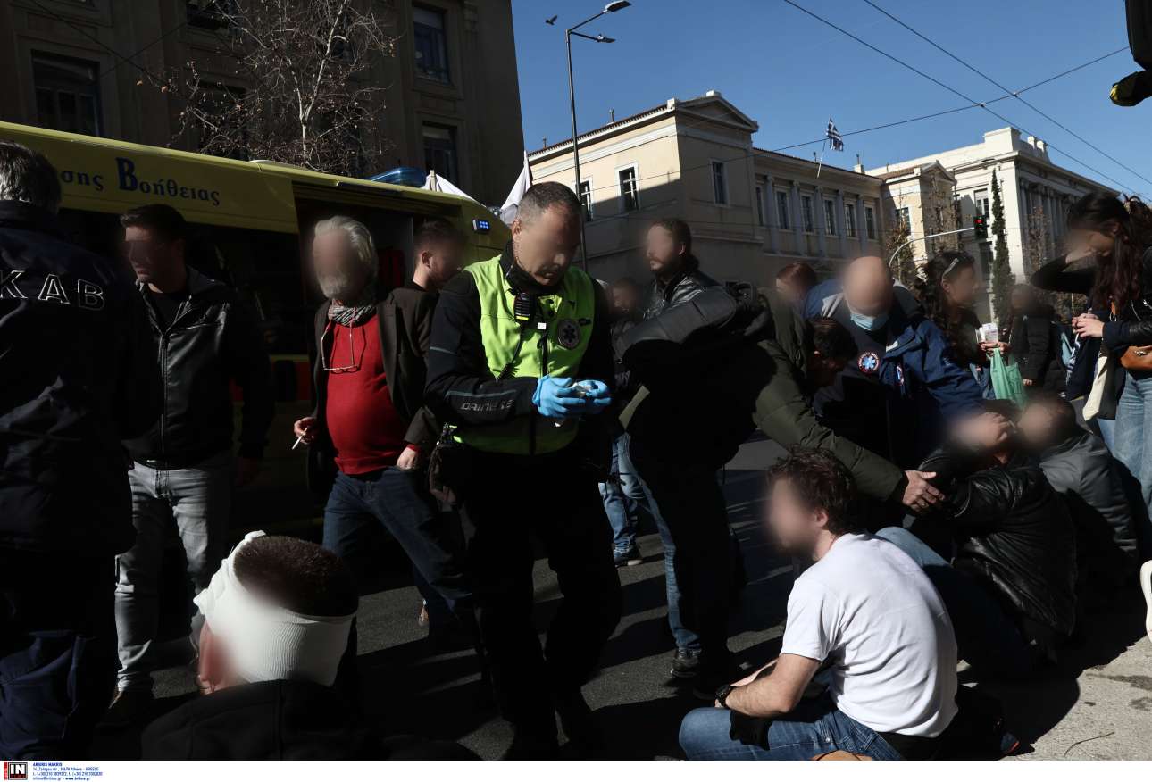 Οπως προκύπτει από τις φωτογραφίες του πρακτορείου INTIMEnews (δείτε τες παρακάτω), υπήρξαν τραυματισμοί (επιτόπου έσπευσε το ΕΚΑΒ για την παροχή των πρώτων βοηθειών στους τραυματίες). Σύμφωνα με το ΑΠΕ-ΜΠΕ, κατά τη διάρκεια των επεισοδίων τραυματίστηκαν τουλάχιστον επτά άτομα (η ΕΡΤ στο ρεπορτάζ της έκανε λόγο για οκτώ).