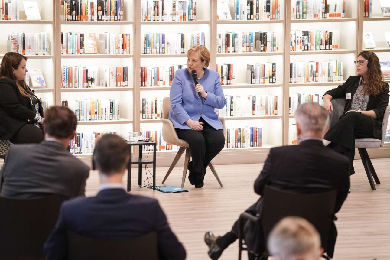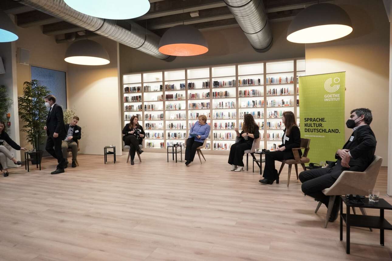 Με ομιλία της σε νέους, στις 9 το πρωί, στο Ινστιτούτο Γκαίτε στην Αθήνα (φωτογραφίες κάτω), ξεκίνησε το σημερινό πρόγραμμα της απερχόμενης καγκελαρίου της Γερμανίας, Ανγκελα Μέρκελ, στην Αθήνα, για να μεταβεί περίπου μία ώρα μετά στο Προεδρικό Μέγαρο για τη συνάντησή της με την Πρόεδρο της Δημοκρατίας Κατερίνα Σακελλαροπούλου.