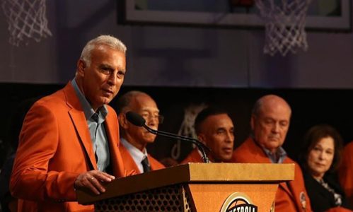 Και έπειτα ξεκίνησε την ομιλία του ως μέλος πλέον του Hall of Fame του μπάσκετ. Περιέγραψε τα πρώτα του βήματα, ότι ονειρευόταν να παίξει το ΝΒΑ, ότι είχε επιλεγεί από τους Μπόστον Σέλτικς την ίδια χρονιά με τον θρυλικό Λάρι Μπερντ – τον οποίο και έδειξε στην αίθουσα.