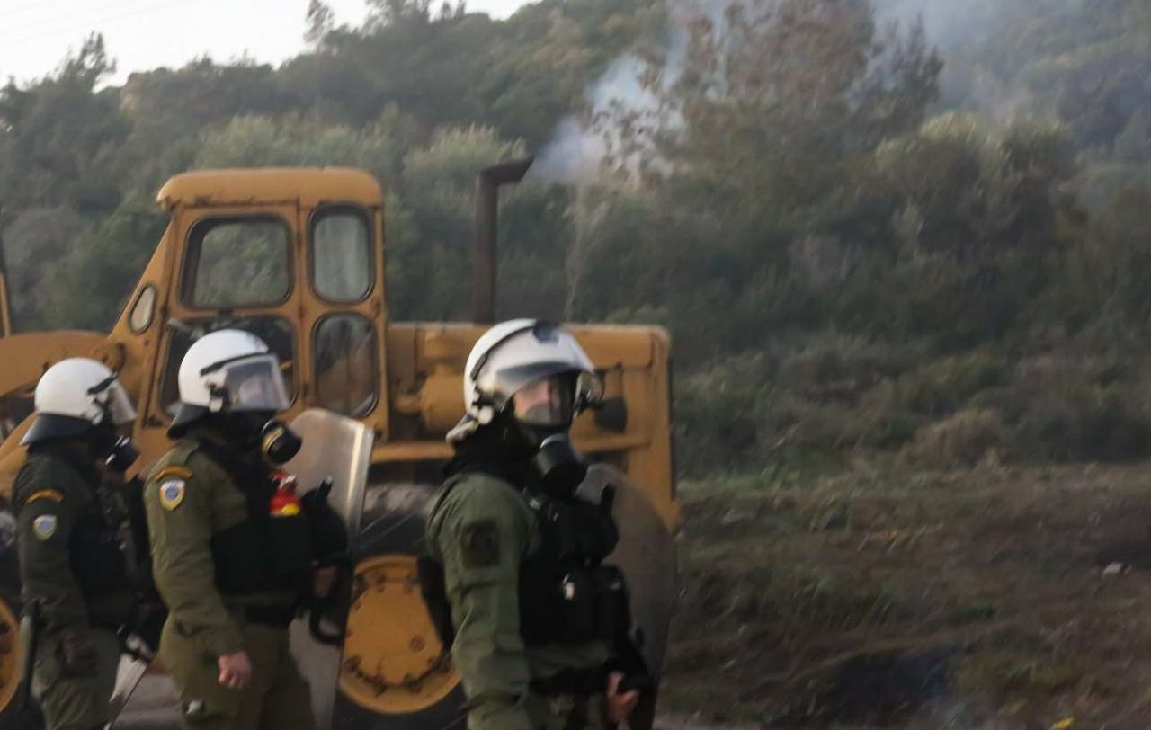 Οι αστυνομικές δυνάμεις έκαναν χρήση χειροβομβίδων κρότου – λάμψης και χημικών ενάντια στους συγκεντρωμένους που διαμαρτύρονται για την επίταξη και τα σχέδια για τη νέα κλειστή δομή.