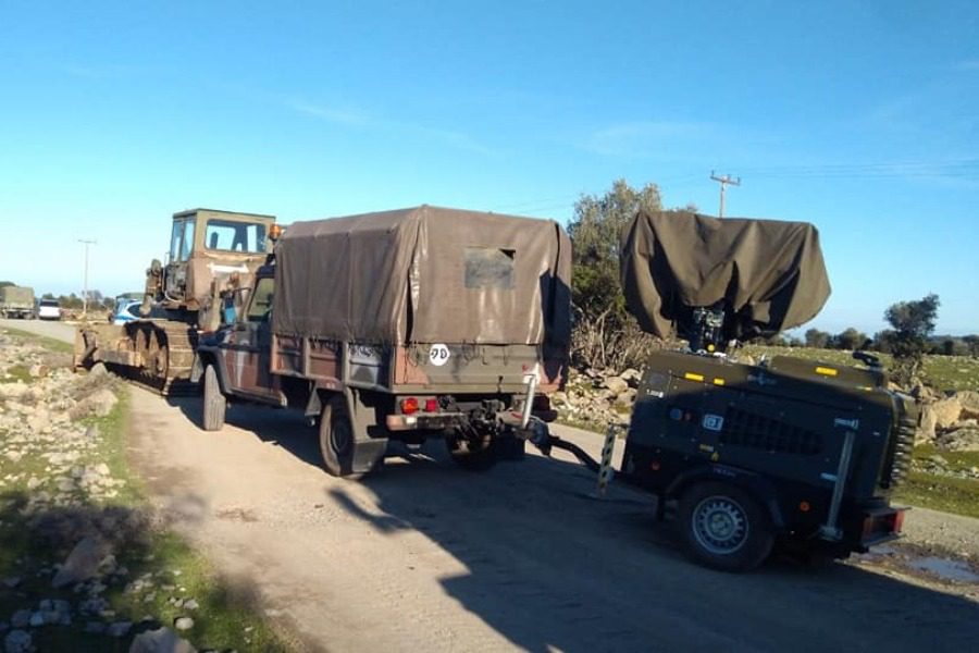 Τελικά, όπως αναφέρει το ΑΠΕ, τα μηχανήματα του Στρατού κατάφεραν να εγκατασταθούν στην περιοχή καθώς έφτασαν εκεί χρησιμοποιώντας παράδρομο μέσα από το δάσος στην περιοχή Πετροβούνι.