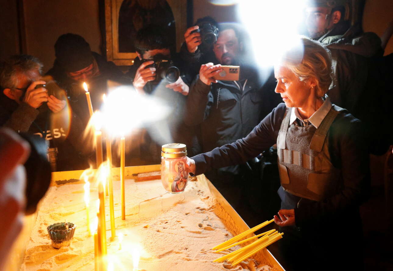 Η Φον ντερ Λάιεν, η οποία συνοδεύεται από τον επικεφαλής της ευρωπαϊκής διπλωματίας, Τζοζέπ Μπορέλ, είχε ανακοινώσει ότι θα μεταβεί σήμερα στο Κίεβο ως ένδειξη υποστήριξης στην Ουκρανία.