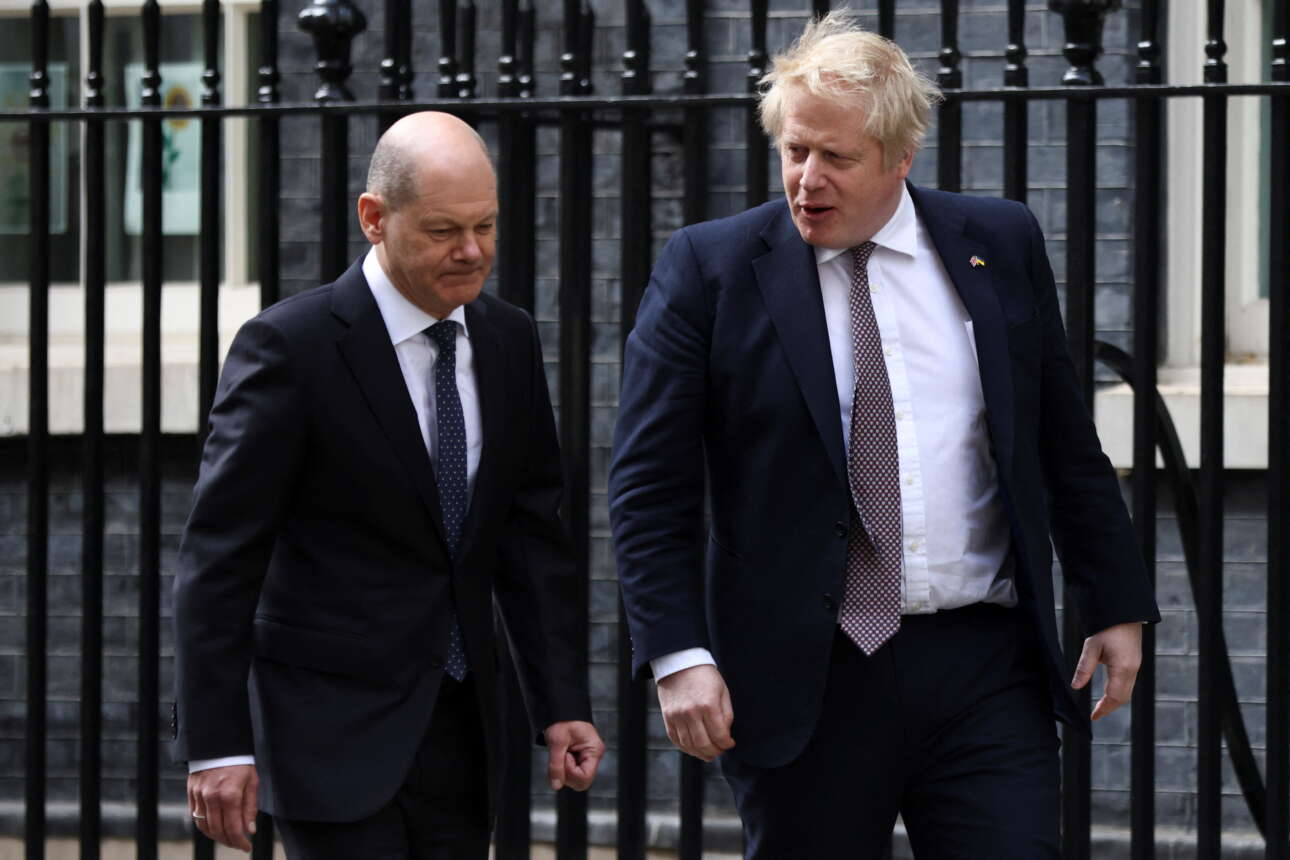 Ο Σολτς ευχαρίστησε τον Τζόνσον για τη θερμή υποδοχή στο Λονδίνο και τόνισε ότι Γερμανία και Βρετανία είναι φίλοι και ενωμένοι απέναντι στον τρόμο της ρωσικής επίθεσης στην Ουκρανία.