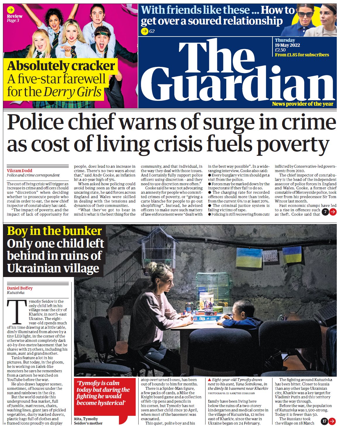 ⇒ Ο Guardian περιγράφει του «αγοριού στο bunker», ενός παιδιού που είχε μείνει μόνο σε ένα χωριό κοντά στο Χάρκοβο, την ώρα που οι Ρώσοι το βομβάρδιζαν.