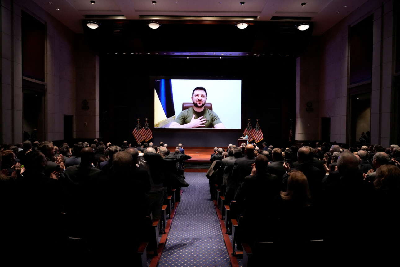 Τα μέλη του Κονγκρέσου των Ηνωμένων Πολιτειών υποδέχθηκαν όρθια και με παρατεταμένο χειροκρότημα τον πρόεδρο της Ουκρανίας Βολοντίμιρ Ζελένσκι.