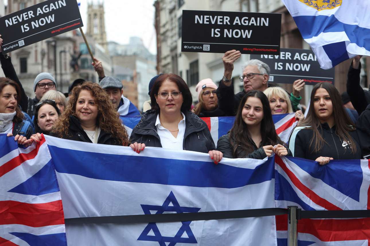 Εκατό χιλιάδες διαδηλωτές συμμετείχαν την Κυριακή στην πορεία κατά του αντισημιτισμού, στους δρόμους του Λονδίνου, μία ημέρα μετά τη νέα κινητοποίηση υπέρ των Παλαιστινίων στη βρετανική πρωτεύουσα.