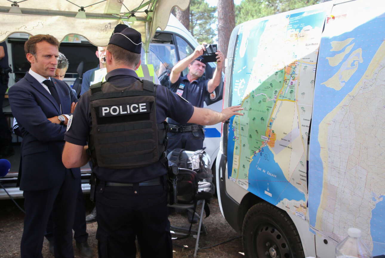 Μπροστά από τους λεπτομερείς χάρτες με τις φωτιές που παρουσίασε στον Μακρόν, ο αρχηγός του πυροσβεστικού σώματος της Ζιρόντ, Μαρκ Βερμελέν, αναφέρθηκε στην εξέλιξη των πυρκαγιών και στις δράσεις των πυροσβεστών στην προσπάθειά τους να τις περιορίσουν προστατεύοντας παράλληλα τις κατοικίες.