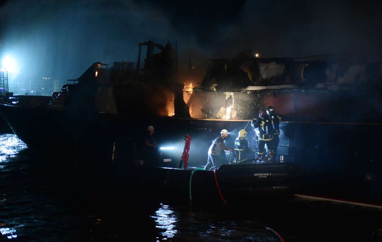 Πλωτό σκάφος του Λιμενικού τούς παρέλαβε και τους μετέφερε σε ασφαλές σημείο της Μαρίνας. Στην κατάσβεση συμμετείχαν εννέα οχήματα της πυροσβεστικής υπηρεσίας καθώς και ένα πλωτό πυροσβεστικό όχημα.