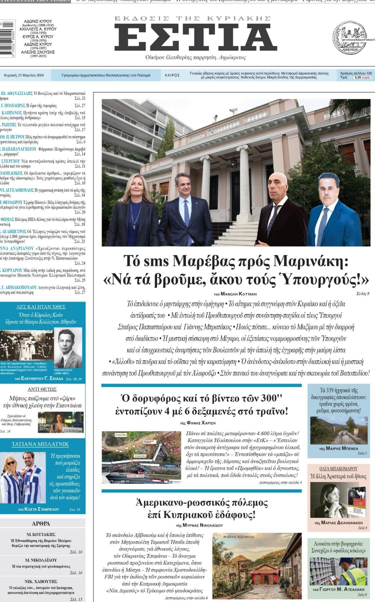 «Για μια ακόμη φορά ξεπεράστηκε η κόκκινη γραμμή της χυδαιότητας. Η εφημερίδα “Εστία” δεν δίστασε να στοχοποιήσει τη σύζυγο του Πρωθυπουργού με ένα πρωτοσέλιδο δημοσίευμα γεμάτο αισχρά ψεύδη. Οπως προκύπτει και από την επίσημη διάψευση του εκδότη του iefimerida.gr κ. Χρήστου Ράπτη, τα όσα αναφέρονται στο σημερινό φύλλο της “Εστίας” είναι υπαγορευμένα αποκυήματα φαντασίας» τονίζει σε ανακοίνωσή του ο υφυπουργός παρά τω Πρωθυπουργώ και κυβερνητικός εκπρόσωπος Παύλος Μαρινάκης.