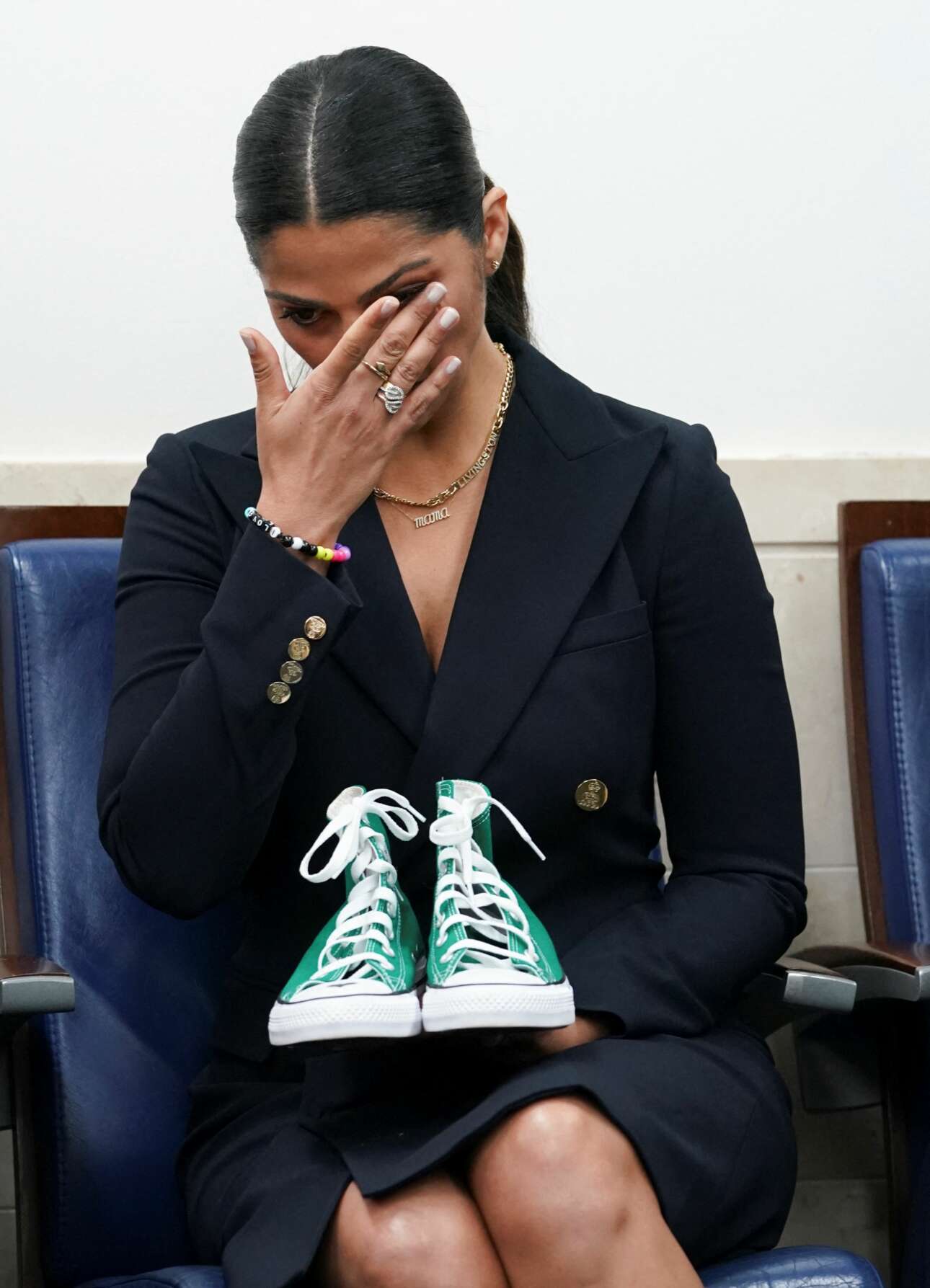 Σε άλλο σημείο της ομιλίας του στην αίθουσα ενημέρωσης του Τύπου του Λευκού Οίκου, ο Μάθιου ΜακΚόναχι ζήτησε από τη σύζυγό του να κρατήσει ψηλά τα πράσινα αθλητικά παπούτσια Converse που φορούσε καθημερινά η 10χρονη Μάιτε Ροντρίγκεζ, η οποία ήλπιζε να γίνει θαλάσσιος βιολόγος. Είχε σχεδιάσει μια καρδιά στο δεξί παπούτσι για να συμβολίσει την αγάπη της για τη φύση. «Είναι τα πράσινα Converse που φορούσε. Αυτά τα παπούτσια αποτέλεσαν το μόνο σαφές στοιχείο για την αναγνώρισή της μετά τον πυροβολισμό». «Τι λέτε για αυτό;», αναρωτήθηκε χτυπώντας τα χέρια του στο πόντιουμ.