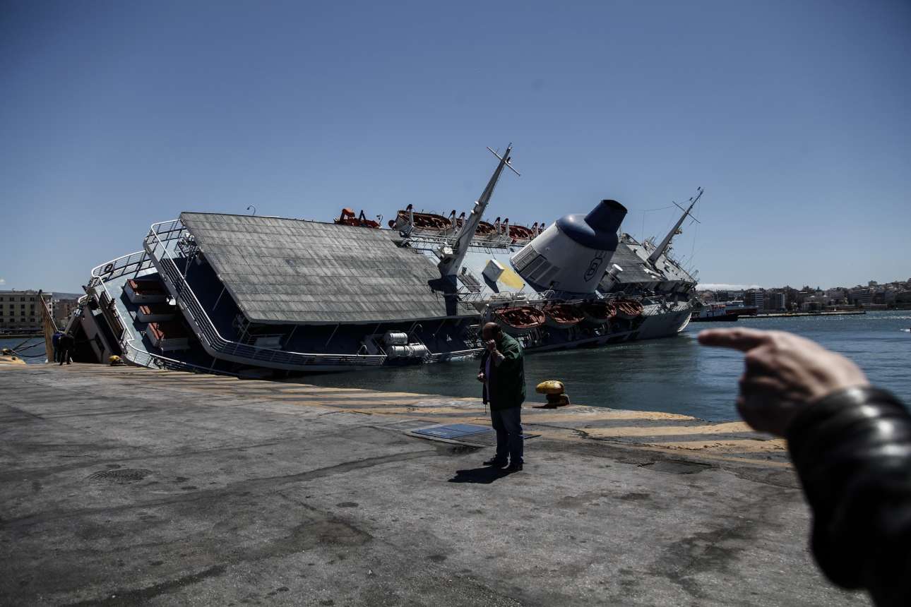 Δείτε φωτογραφίες με το Παναγία Τήνου να βυθίζεται στο λιμάνι του Πειραιά