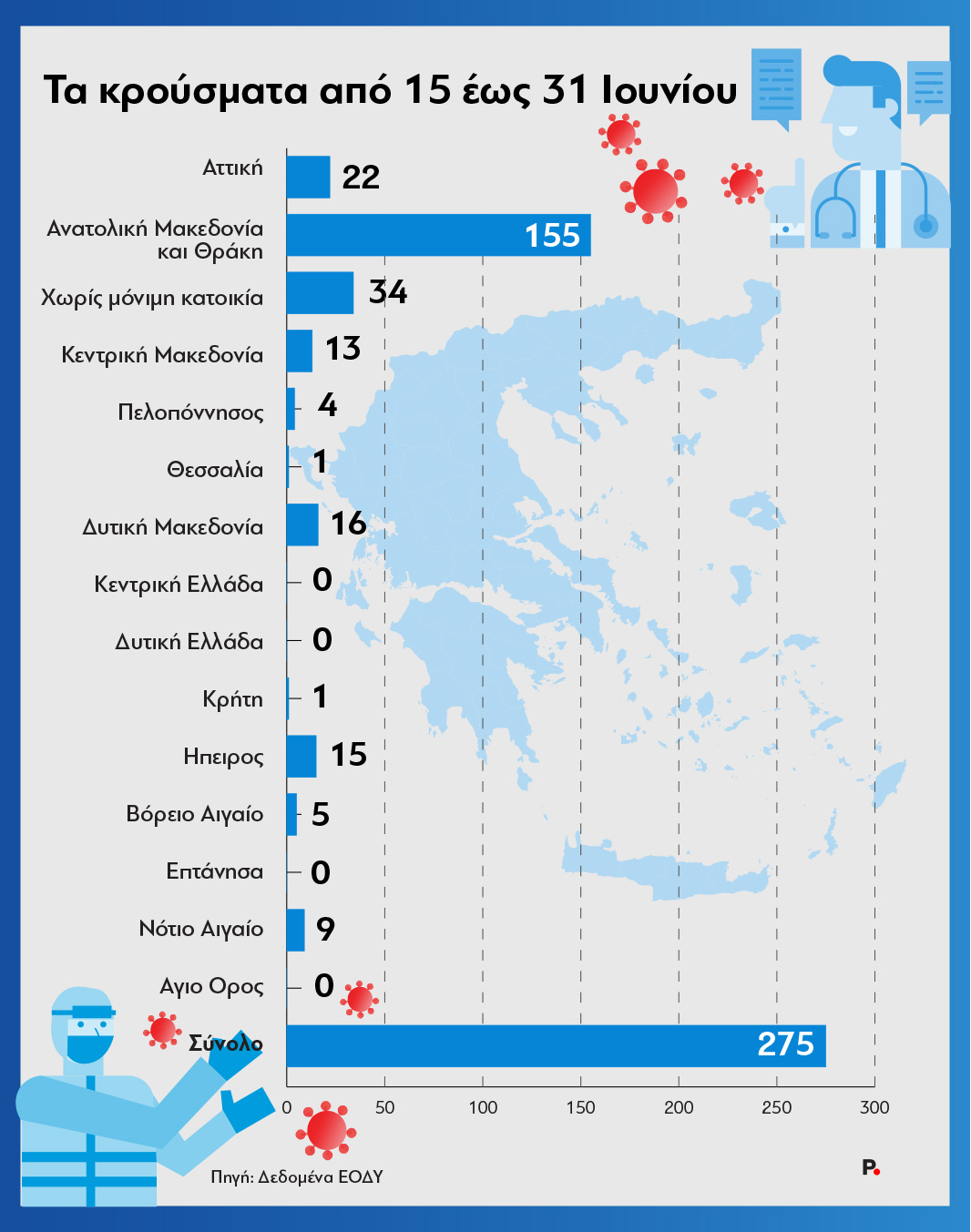 Με 492 κρούσματα έκλεισε ο Ιούνιος – Ποιες περιοχές έχουν τα περισσότερα