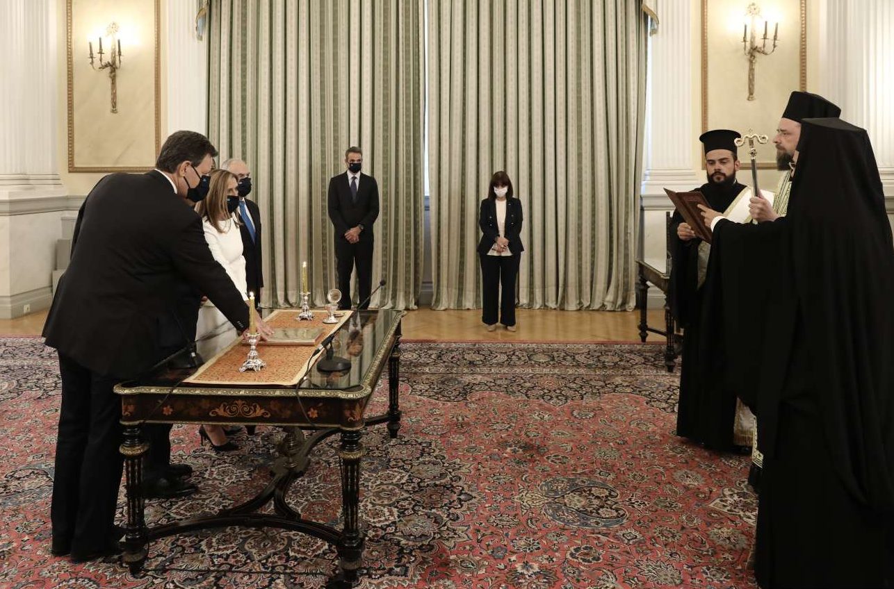 Ο προερχόμενος από την Κεντροαριστερά διακεκριμένος καθηγητής του Οικονομικού Πανεπιστημίου Αθηνών έγινε έτσι το πρώτο μέλος μιας δεξιάς ελληνικής κυβέρνησης που ορκίζεται να τηρεί το Σύνταγμα και τους νόμους, όχι σε έναν εκπρόσωπο της ιεραρχίας, αλλά στην Πρόεδρο της Δημοκρατίας Κατερίνα Σακελλαροπούλου.