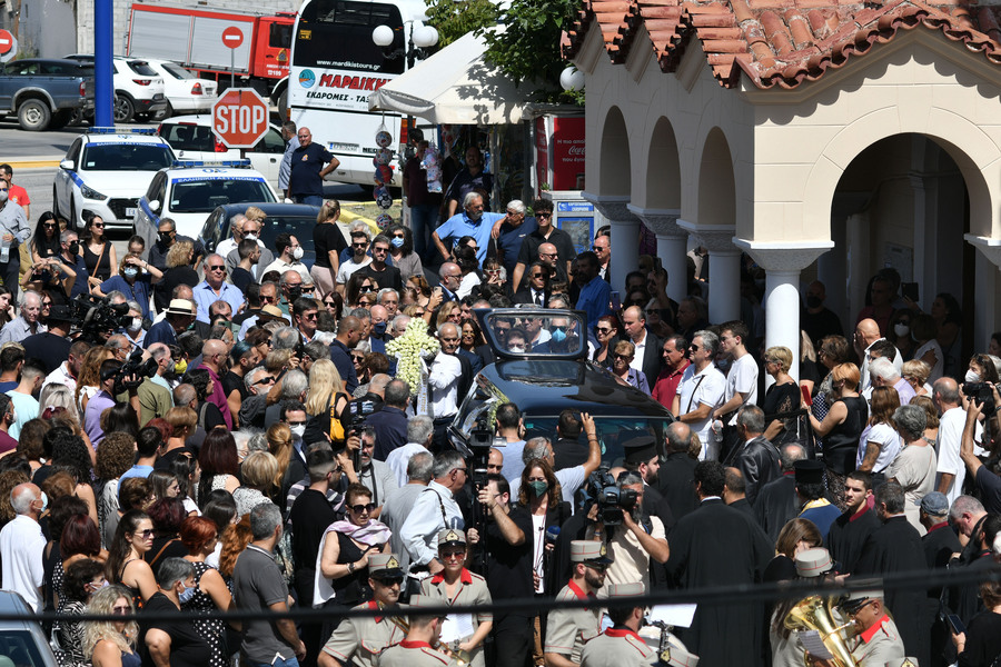 Πλήθος κόσμου είχε συγκεντρωθεί στην εκκλησία του Αγίου Γεωργίου, μέσα και έξω από τον ναό, για να πουν το τελευταίο αντίο στη μεγάλη ηθοποιό που έφυγε από τη ζωή στα 96 της χρόνια.