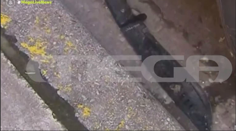 Νωρίτερα, σύμφωνα με πληροφορίες του MEGA, λίγα μέτρα από το σημείο του εγκλήματος βρέθηκε μία ματσέτα (φωτογραφία κάτω), η οποία θα εξεταστεί, προκειμένου να διαπιστωθεί εάν την έφεραν πάνω τους οι δράστες της αιματηρής επίθεσης στη Θεσσαλονίκη, που οδήγησε στον θάνατο του 19χρονου.