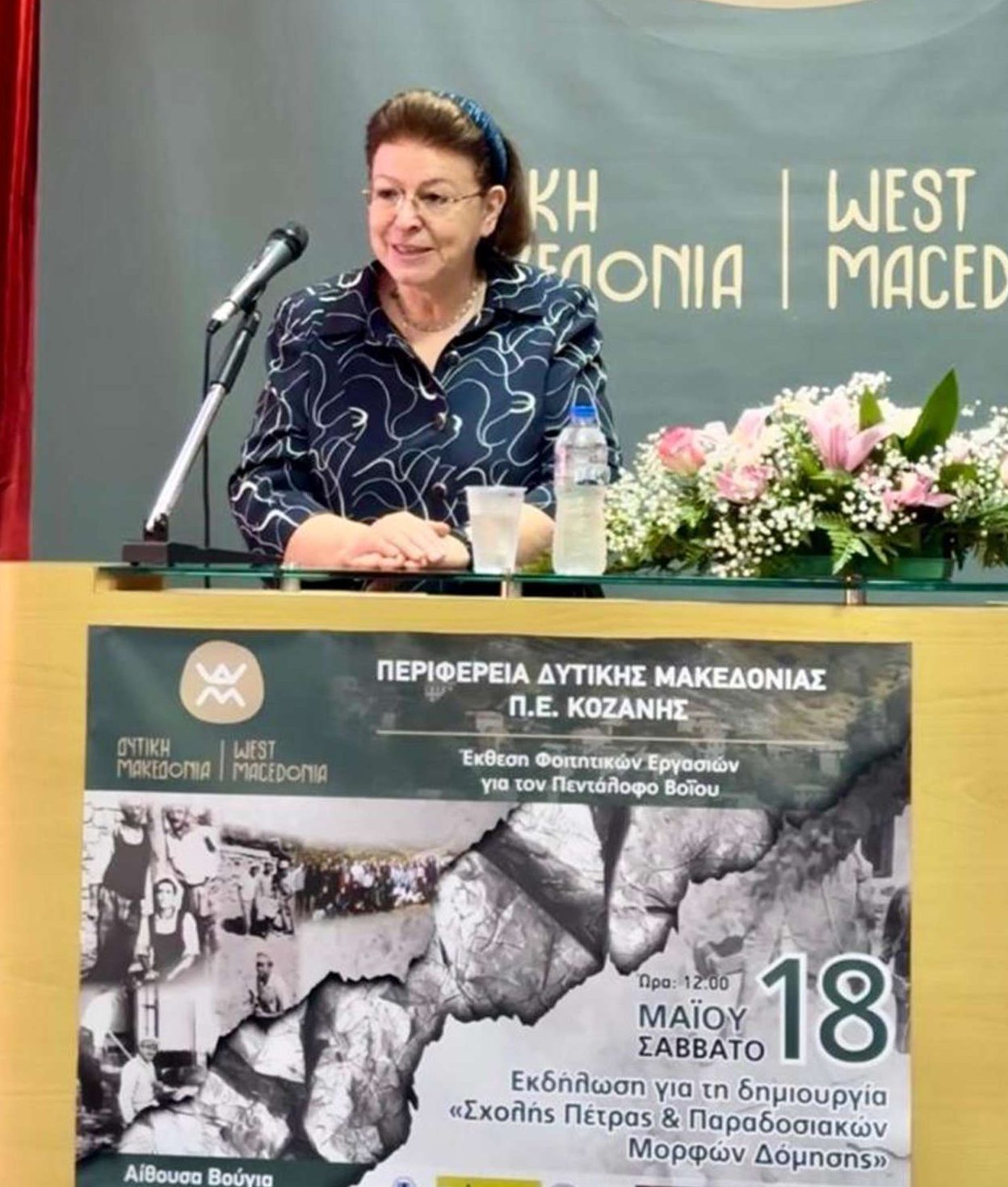 Ως παράδειγμα έφερε την Περιφέρεια Δυτικής Μακεδονίας και τη Σχολή της Πέτρας και Παραδοσιακών Μορφών Δόμησης, η οποία ιδρύεται στον Πεντάλοφο Κοζάνης από το ΥΠΠΟ, σε συνεργασία με την οικεία περιφέρεια και με την τοπική αυτοδιοίκηση. «Η Σχολή αυτή θα εκπαιδεύει τους νέους ανθρώπους που θέλουν να μείνουν στον τόπο τους, αλλά δεν έχουν στην πραγματικότητα κατοχύρωση επαγγελματική. Θα τους εκπαιδεύσει να συνεχίσουν να δουλεύουν το παραδοσιακό υλικό, που είναι άφθονο στην περιοχή τους, και να διδάσκονται από τους λίγους αλλά πολύ σημαντικούς τεχνίτες της πέτρας που έχουν ακόμη απομείνει», πρόσθεσε η υπουργός.