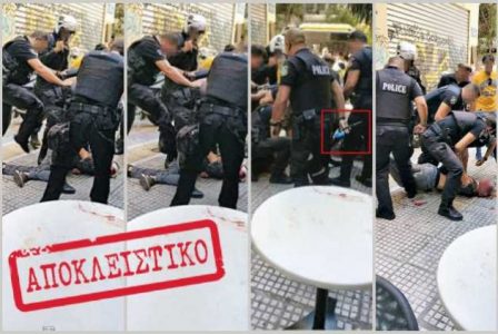 «Με το γόνατο τον έχει ένας κάτω, και προσπαθούν να του βγάλουν τα χέρια που όπως ήταν μπρούμυτα τα είχε μπροστά του. Και του τραβάνε τα χέρια, για να του τα βάλουνε πίσω, να του τα δέσουνε με τάι ραπς, πώς τα λένε αυτά τα πλαστικά, όχι με χειροπέδες τα σιδερένια. Τη φάση τώρα ότι είχε γυαλί στο χέρι, ότι πήγε να μαχαιρώσει κάποιον δεν τα είδα, αλλά και δεν τα πιστεύω γιατί ό,τι και να σήκωσε θα το σήκωσε σε άμυνα, ότι “αφήστε με μη με πλησιάζετε”. Αποκλείεται στην κατάσταση που ήτανε να είχε τη δυνατότητα να επιτεθεί στον οποιονδήποτε. Σε εκείνη τη φάση εγώ είδα έναν αστυνομικό, ο οποίος είχε το γκλομπ το πτυσσόμενο ανοιχτό, αλλά δεν τον είδα να χτυπάει. Τώρα τον χτύπησε πιο πριν, δεν τον χτύπησε, εγώ δεν το έχω δει. Άλλοι λένε τον χτύπησε, εγώ δεν το έχω δει».