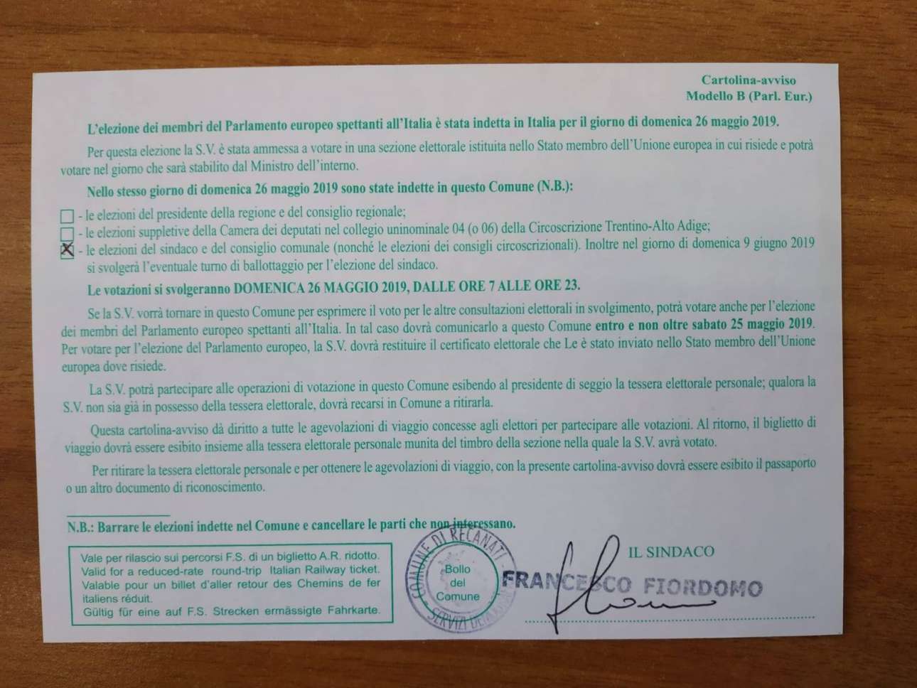 Ηταν, όπως γράφουν τα ιταλικά ενημέρωσης, μια πρόσκληση να ψηφίσει στις δημοτικές εκλογές στην Ιταλία, που διεξάγονται στις 26 Μαΐου, την ίδια ημέρα με τις ευρωεκλογές.