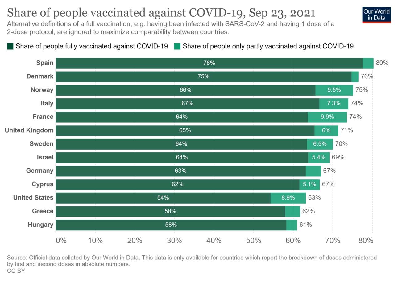 H χώρα μας, μόλις την Πέμπτη, έσπασε το φράγμα των 6 εκατομμυρίων πλήρως εμβολιασμένων, κάτι που σε ποσοστό μεταφράζεται σε περίπου 59%.