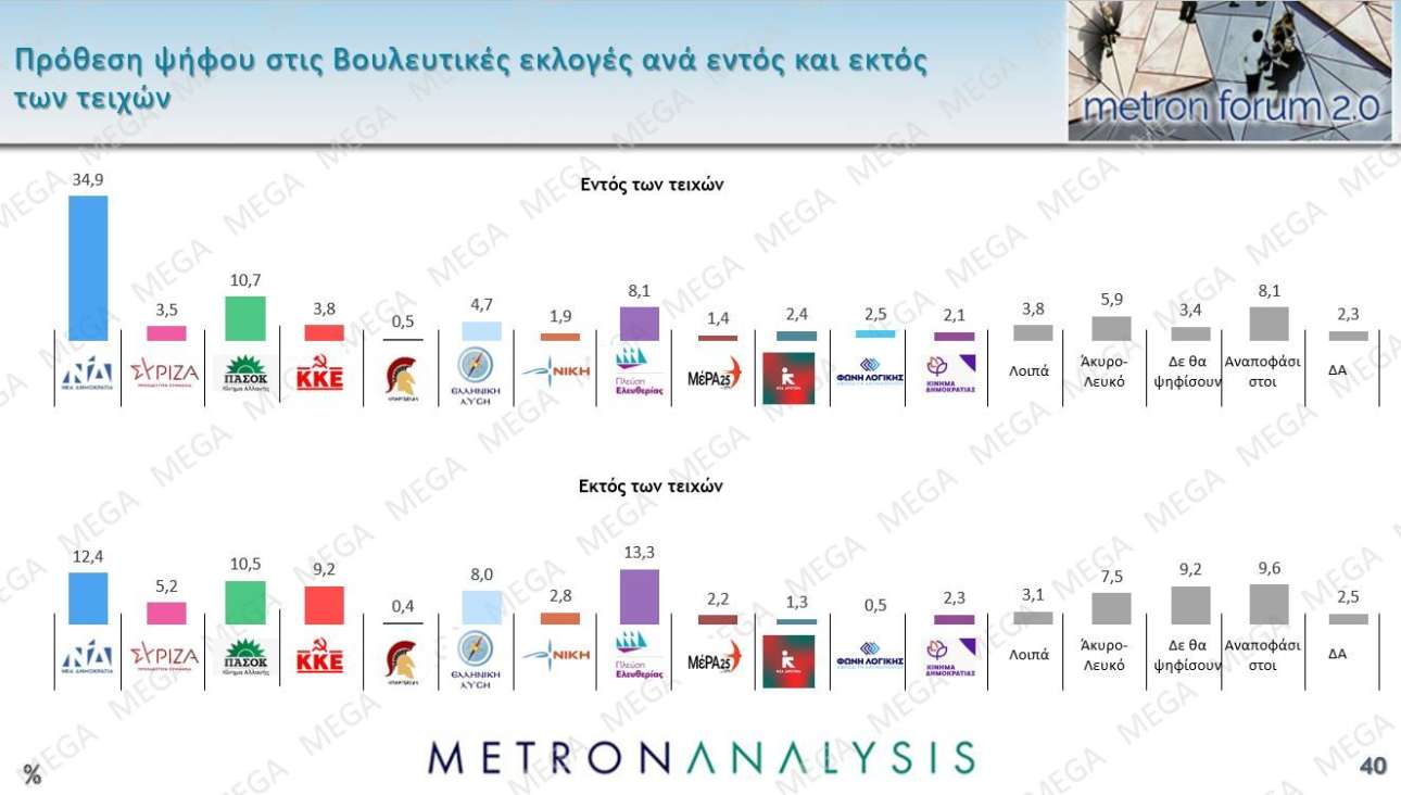 Metron Analysis: Στο 30,2% η ΝΔ – Μάχη Πλεύσης Ελευθερίας και ΠΑΣΟΚ