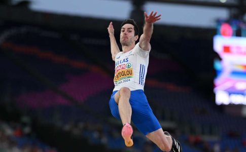 Το πρώτο του άλμα, στα 8,42 μέτρα, ήταν κορυφαία επίδοση στον κόσμο για το 2024. Δεν τον ικανοποίησε – βγήκε από το σκάμμα με νεύρα. Κλασικός Μίλτος Τεντόγλου.