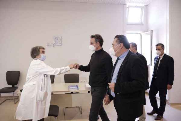 «Σας βλέπω καλά οργανωμένους. Αντε, με το καλό να ξεκινήσουμε», κατέληξε ο Πρωθυπουργός, απευθυνόμενος στα μελη του προσωπικού του εμβολιαστικού κέντρου.