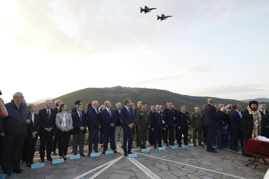 Στην ομιλία που απηύθυνε, κατά την οποία μίλησε εκτενώς για τη σημασία της Εθνικής Επετείου, δεν παρέλειψε να αναφερθεί και στο Ουκρανικό. «Αυτό το ΟΧΙ που είναι χαραγμένο στην πλαγιά του Προφήτη Ηλία έρχεται από μακριά και πηγαίνει μακριά, συνοδεύοντας την Ιστορία μας. Ετσι, σήμερα, απευθύνεται και σε έναν άλλον εισβολέα, στη Ρωσία που καταπατά το Διεθνές Δίκαιο, το απαραβίαστο των συνόρων και την ανεξαρτησία της Ουκρανίας. Και ανάβει έτσι μια διπλή φωτιά στην Ευρώπη, προκαλώντας αίμα στα μέτωπα με τα όπλα και αποζητώντας αστάθεια στις δυτικές κοινωνίες με μοχλό την ακρίβεια», ανέφερε ο Πρωθυπουργός προτού «περάσει» στα Ελληνοτουρκικά, λέγοντας: