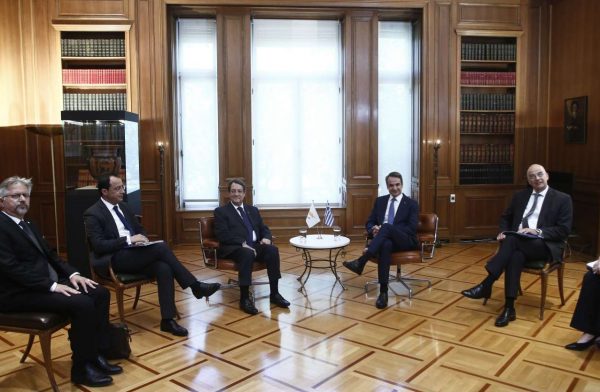 Το Πρόεδρο της Κυπριακής Δημοκρατίας Νίκο Αναστασιάδη υποδέχθηκε το πρωί της Τρίτης στο Μαξίμου ο Πρωθυπουργός Κυριάκος Μητσοτάκης, προκειμένου να συντονίσουν τις κινήσεις τους έναντι της κλιμακούμενης τουρκικής προκλητικότητας σε όλα τα επίπεδσα, εν όψει και της Συνόδου Κορυφής της ΕΕ στις 17 – 18 Ιουλίου.