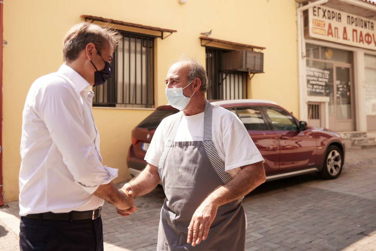 Αμέσως μετά τη συζήτηση στο Δημαρχείο, ο Πρωθυπουργός πέρασε από τα καταστήματα στους κεντρικούς δρόμους των Φαρσάλων και συνομίλησε με καταστηματάρχες.