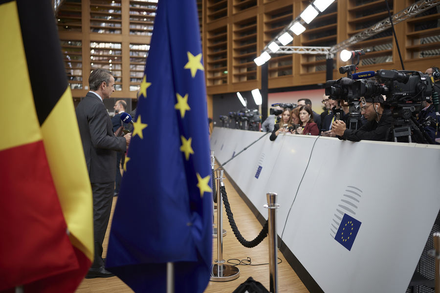 Ο Πρωθυπουργός  στις δηλώσεις στους δημοσιογράφους, μετά την ολοκλήρωση των εργασιών της Συνόδου του Ευρωπαϊκού Συμβουλίου στις Βρυξέλλες ΑΠΕ-ΜΠΕ/ΓΡΑΦΕΙΟ ΤΥΠΟΥ ΠΡΩΘΥΠΟΥΡΓΟΥ/ΔΗΜΗΤΡΗΣ ΠΑΠΑΜΗΤΣΟΣ