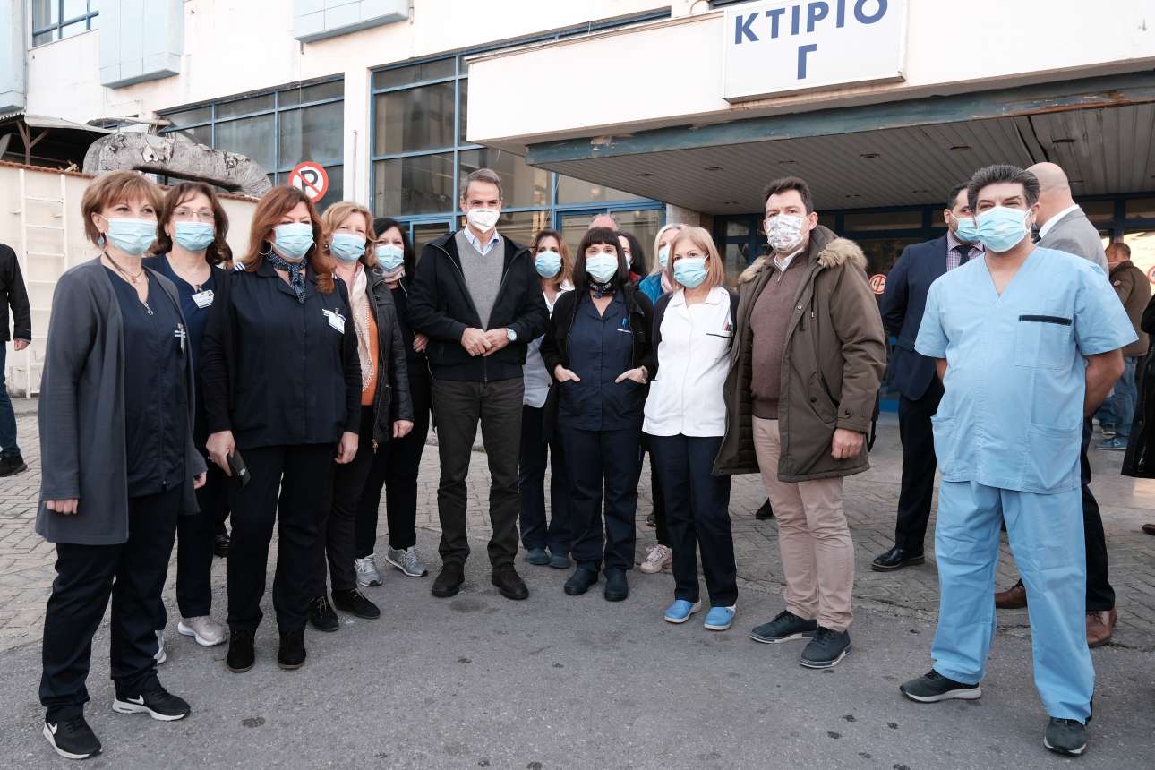 Ο Πρωθυπουργός συνομιλεί με μέλη του νοσηλευτικού προσωπικού στο Ιπποκράτειο Νοσοκομείο στη Θεσσαλονίκη | ΓτΠ ΠΑΠΑΜΗΤΣΟΣ ΔΗΜΗΤΡΗΣ