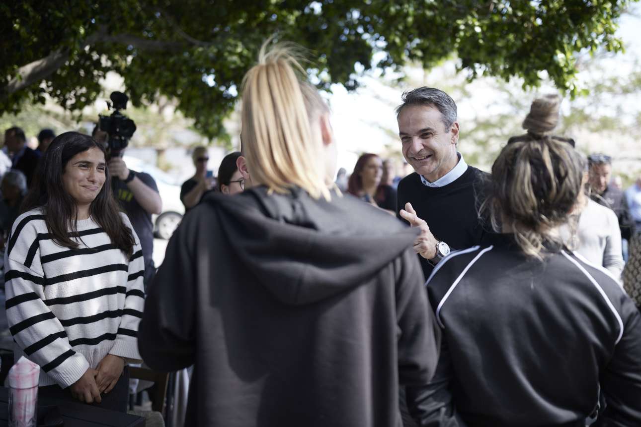 Νωρίτερα, ο κ. Μητσοτάκης επισκέφθηκε τον οικισμό Μεγάλο Χωριό, όπου είχε την ευκαιρία να συναντήσει κατοίκους στην κεντρική πλατεία και να συνομιλήσει μαζί τους.