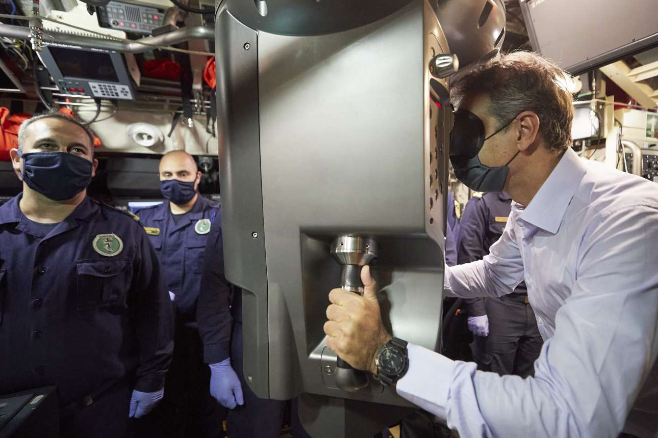 O Kυριάκος Μητσοτάκης ενημερώθηκε από τον Κυβερνήτη του υποβρυχίου, Πλωτάρχη Φ.Μαϊράγκα για τις επιχειρησιακές δυνατότητες αλλά και για τη λειτουργία του. Όμως, όπως είπε ο Κυβερνήτης: «η φωνή μου, η καρδιά μου και ο πολλαπλασιαστής της ισχύος μας είναι το προσωπικό του υποβρυχίου», για να προσθέσει πως όταν ξεκινά μια αποστολή οι σκέψεις μπορεί να είναι πίσω στην οικογένεια αλλά το μυαλό και η καρδιά είναι αφοσιωμένα στο καθήκον.