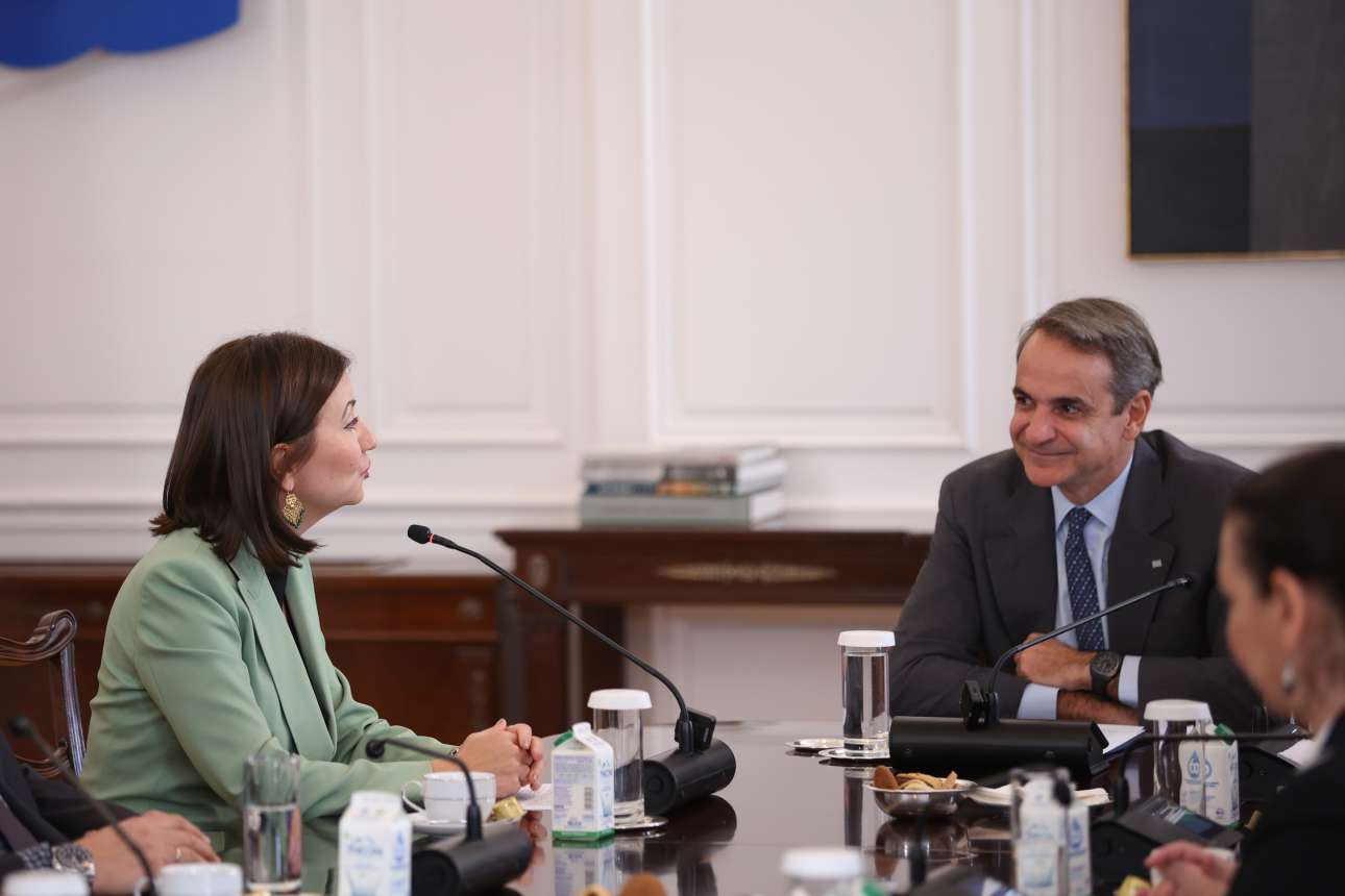 Ο Πρωθυπουργός Κυριάκος Μητσοτάκης είχε το μεσημέρι της Δευτέρας συνάντηση στο Μέγαρο Μαξίμου.με την Επίτροπο Καινοτομίας, Έρευνας, Πολιτισμού, Εκπαίδευσης και Νεολαίας της Ευρωπαϊκής Ένωσης Ιλιάνα Ιβάνοβα ( Iliana Ivanova).