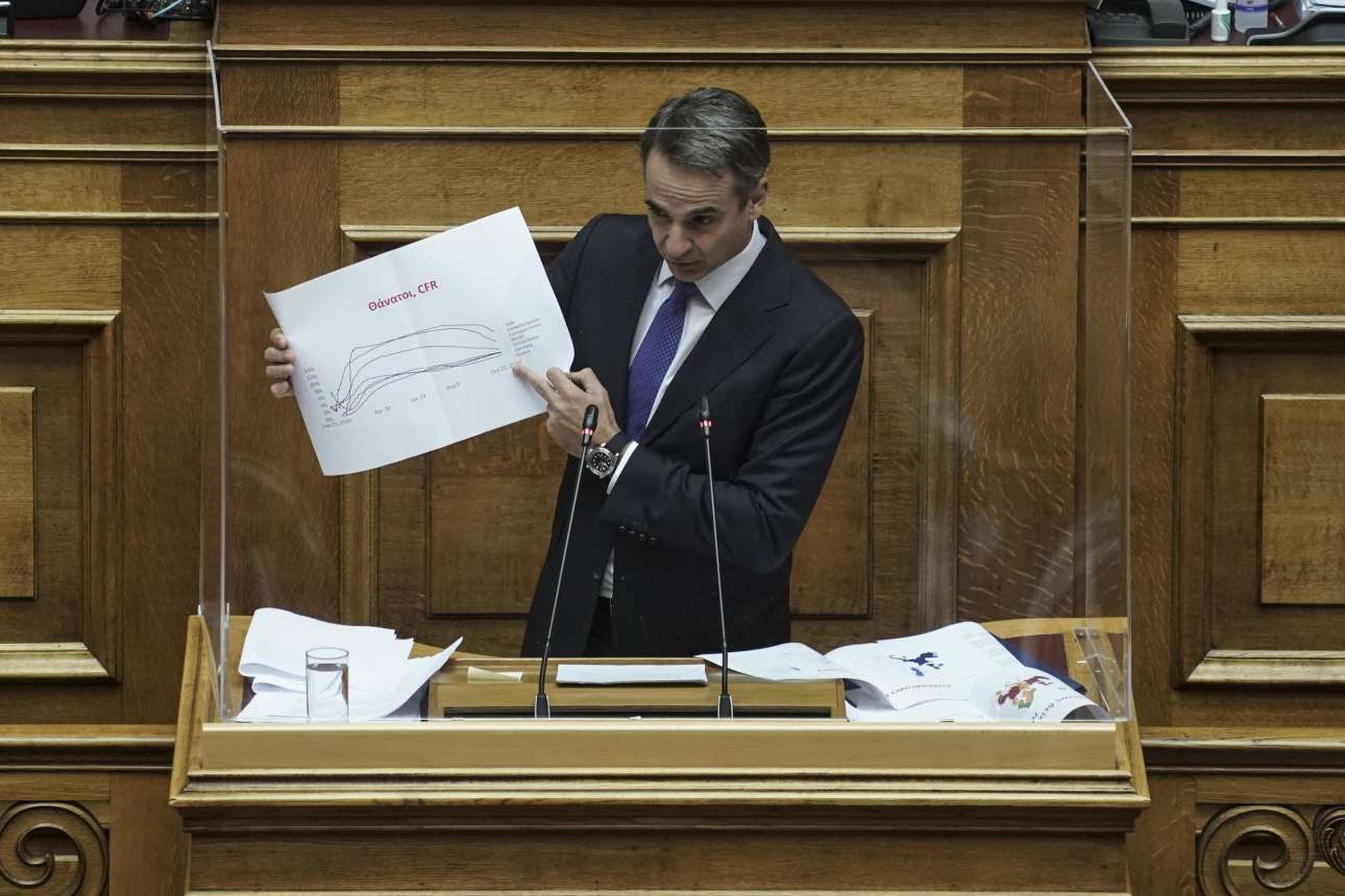 Αναφερόμενος στην πανδημία και την κριτική που γίνεται στην κυβέρνηση, απαντώντας στην κυρία Γεννηματά, ο κ. Μητσοτάκης παρέθεσε διαγράμματα που αποτυπώνουν την εικόνα των κρουσμάτων όπου η Ελλάδα μαζί με σκανδιναβικές χώρες «ήταν οι καλύτερες αναφορικά με τον αριθμό των κρουσμάτων στην ΕΕ».