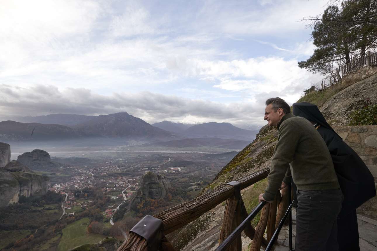 Τον θαυμασμό του στους πρώτους μοναχούς οι οποίοι εγκαθίδρυσαν τον μοναχισμό «σε αυτούς τους αφιλόξενους βράχους», «στην κυριολεξία μεταξύ ουρανού και γης» εξέφρασε ο Μητσοτάκης κατά την επίσκεψή του στη Μονή της Μεταμόρφωσης του Σωτήρος, γνωστή και ως «Μεγάλο Μετέωρο», και τη Μονή Αγίου Στεφάνου.