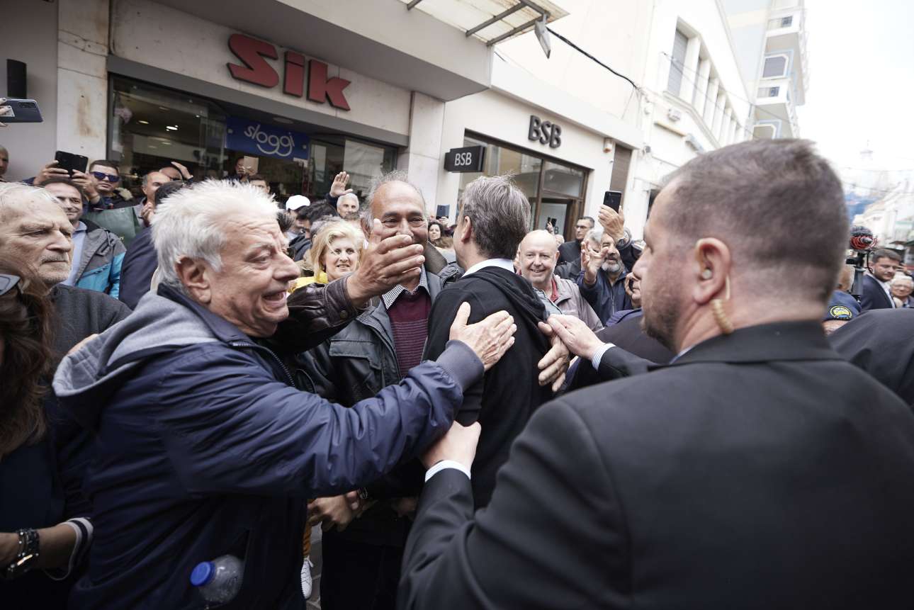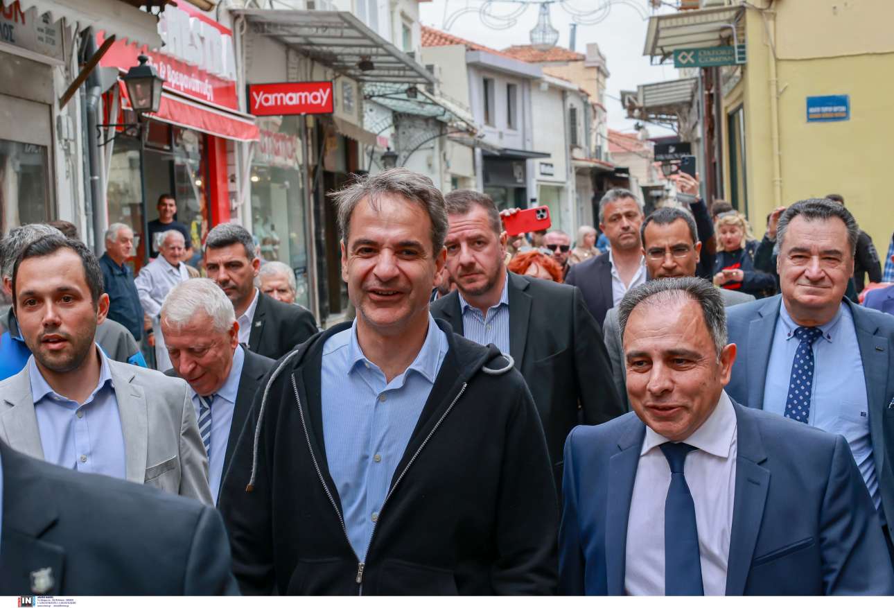 Το πρόγραμμα της επίσκεψης Μητσοτάκη στη Μυτιλήνη περιελάμβανε και την καθιερωμένη στις περιοδείες του επαφή με τους πολίτες, στην κεντρική αγορά της οδού Ερμού.