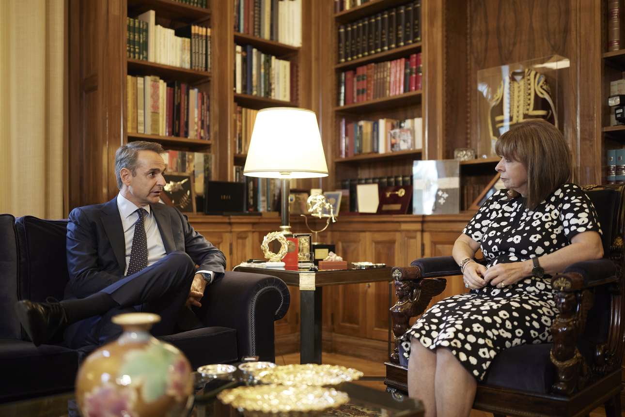 Στην καθιερωμένη μηνιαία συνάντηση ενημέρωσης με την Πρόεδρο της Δημοκρατίας, Κατερίνα Σακελλαροπούλου, ο Πρωθυπουργός, Κυριάκος Μητσοτάκης, μίλησε για μια πολύ καλή τουριστική περίοδο στη χώρα, αλλά και για ένα πολύ δύσκολο καλοκαίρι από πλευράς κρίσεων που αφορούν την Πολιτική Προστασία, με πολύ δύσκολες –όπως χαρακτηριστικά ανέφερε– πυρκαγιές.