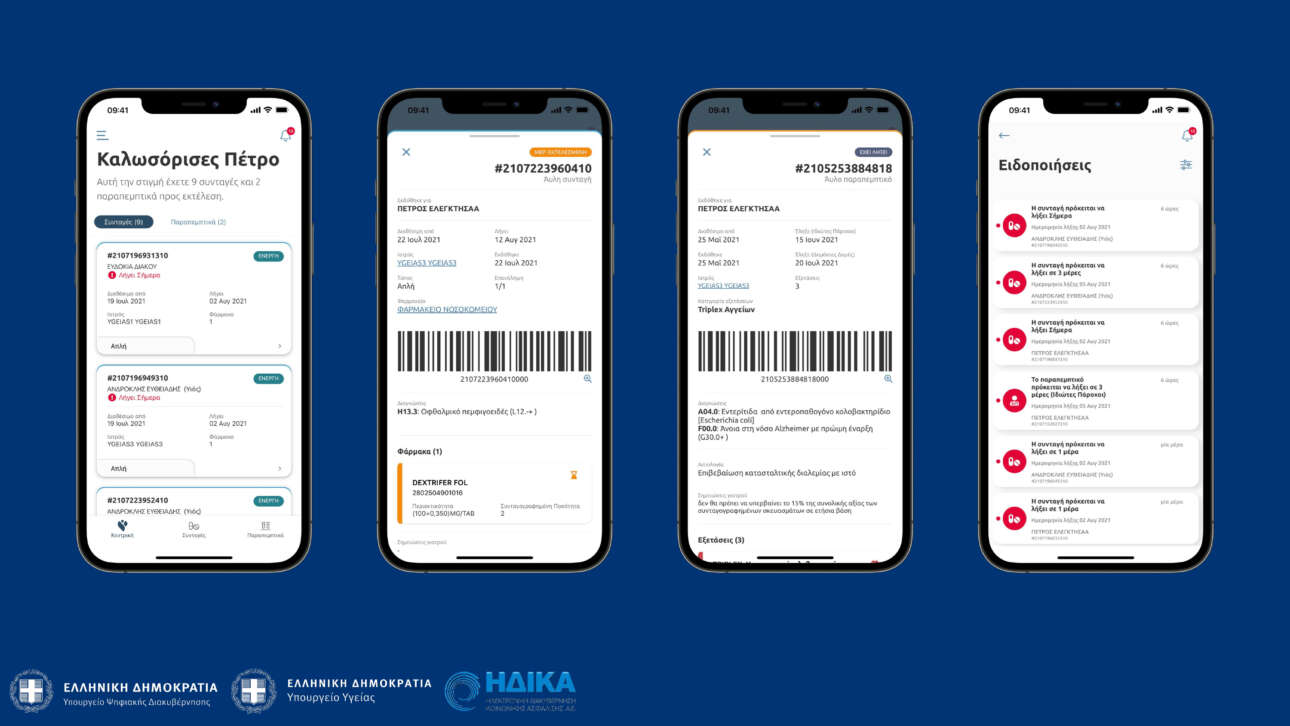 - Nα λαμβάνουν στο κινητό τους ειδοποιήσεις (push notifications) για κάθε συνταγή ή παραπεμπτικό που εκδίδεται για τον ΑΜΚΑ τους μέσω της άυλης συνταγογράφησης
