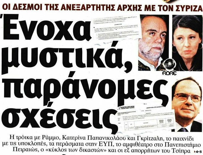 «Σημερινό δημοσίευμα της εφημερίδας “Απογευματινή”, αποκαλύπτει υπόγειες διαδρομές και το πώς ο κ. Τσίπρας αποφάσισε να μετατρέψει μια ανεξάρτητη αρχή σε προεκλογικό του ορμητήριο.