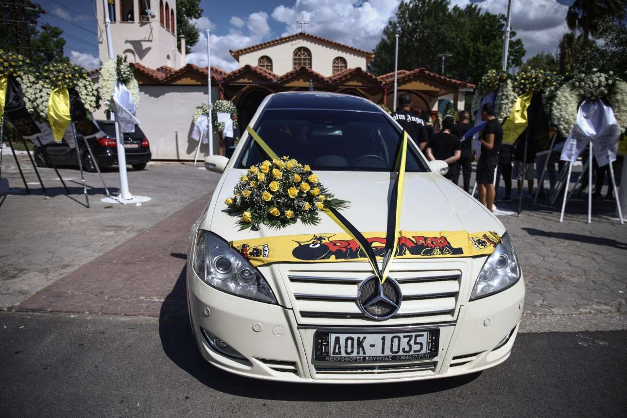 Σε κλίμα οδύνης είπαν το «τελευταίο αντίο» στον 29χρονο Μιχάλη Κατσούρη, ο οποίος βρήκε τραγικό θάνατο έχοντας δεχθεί χτύπημα από μαχαίρι στα αιματηρά επεισόδια που σημειώθηκαν τα ξημερώματα της Τρίτης έξω από το γήπεδο της ΑΕΚ στην Νέα Φιλαδέλφεια, συγγενείς και φίλοι οι οποίοι βρέθηκαν στην κηδεία του στον Ιερό Ναό Αγίου Κωνσταντίνου, στην Ελευσίνα, το απόγευμα της Παρασκευής.