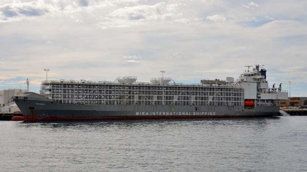 Το πλοίο, το οποίο ανήκει στην Gulf Navigation Holding με έδρα τα Ηνωμένα Αραβικά Εμιράτα, αναχώρησε από στη Νέα Ζηλανδία στις 14 Αυγούστου με 5.867 βοοειδή, σύμφωνα με το υπουργείο Εξωτερικών της Νέας Ζηλανδίας.