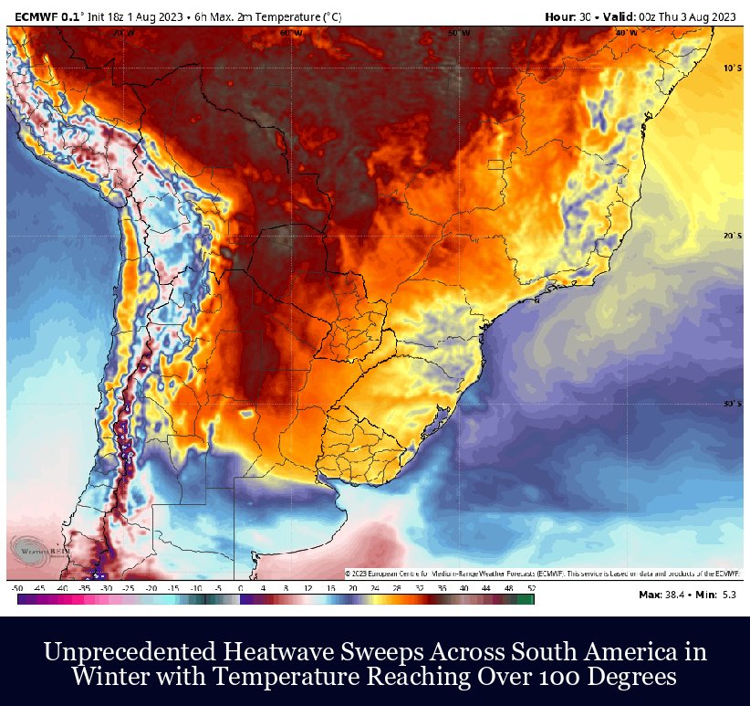 Δεδομένα από την Εθνική Μετεωρολογική Υπηρεσία της Αργεντινής έδειξαν πως στο Μπουένος Αϊρες η θερμοκρασία ξεπέρασε τους 30 βαθμούς Κελσίου την 1η Αυγούστου, η υψηλότερη την ημερομηνία αυτή εδώ και 117 χρόνια.