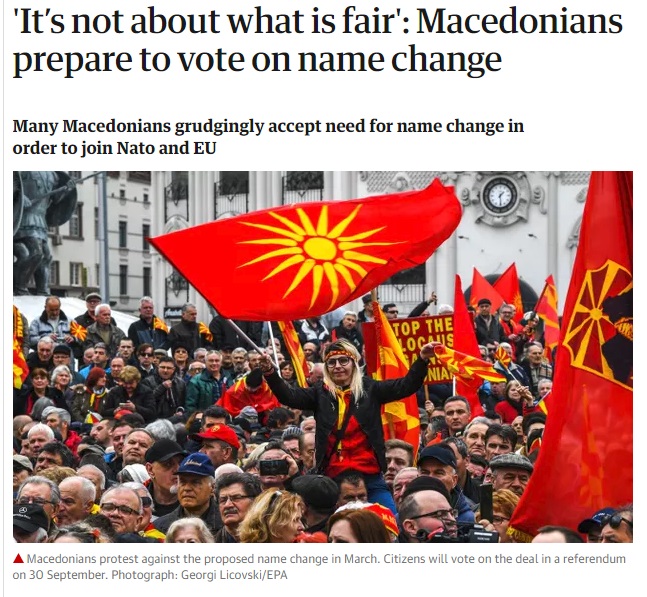 Βουλευτές και στελέχη του VMRO αντιτίθενται με οργή στη συμφωνία των Πρεσπών διότι, όπως επισημαίνει στο δημοσίευμα του ο Guardian, βάσει όσων προβλέπει, η χώρα τους θα πρέπει να αλλάξει το όνομά της όχι μόνο στις διεθνείς επικοινωνίες αλλά και εσωτερικά (το γνωστό δηλ. erga omnes), με τα διαβατήρια, τα ονόματα των υπουργείων και όλες τις άλλες αναφορές σε «Μακεδονία» να αντικαθίστανται από το «Βόρεια Μακεδονία».